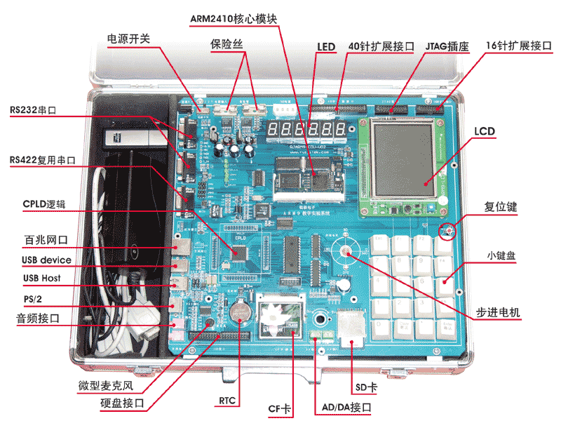 RJARM2410-A套餐:套餐A:是专业支持三星半导体公司(SAMSUNG)推出的S3C2410(32位ARM)微控制器的普及......